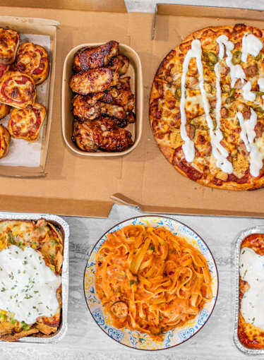 1 Value Range Pizza, 1 Standard Pasta and Garlic Bread